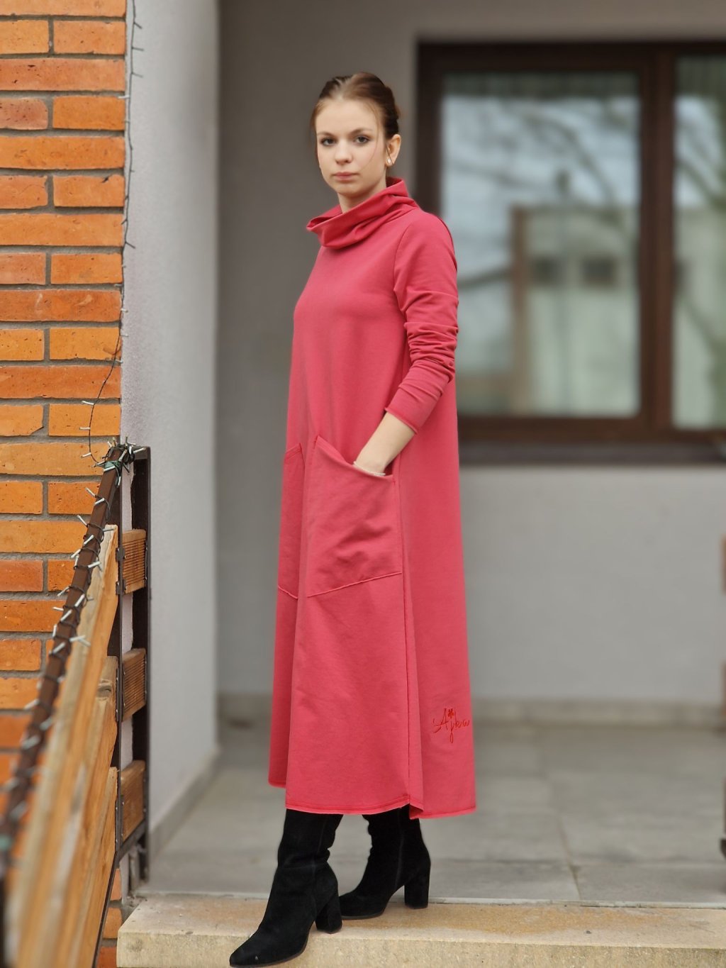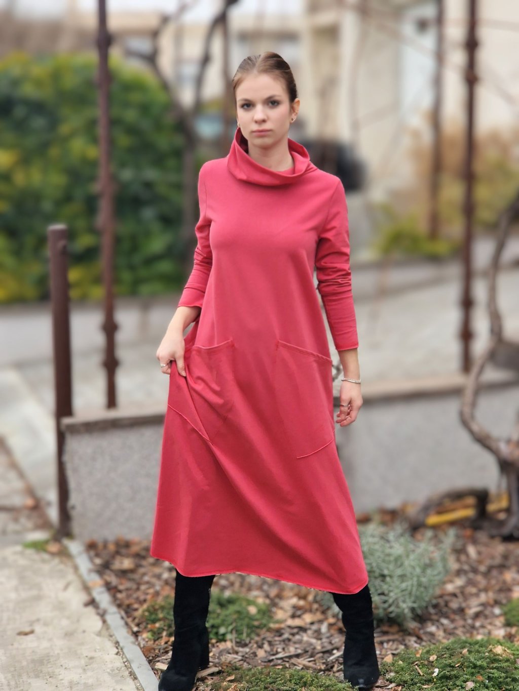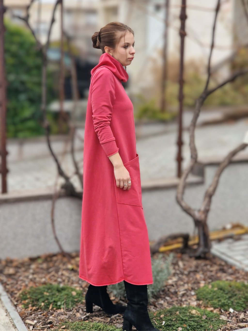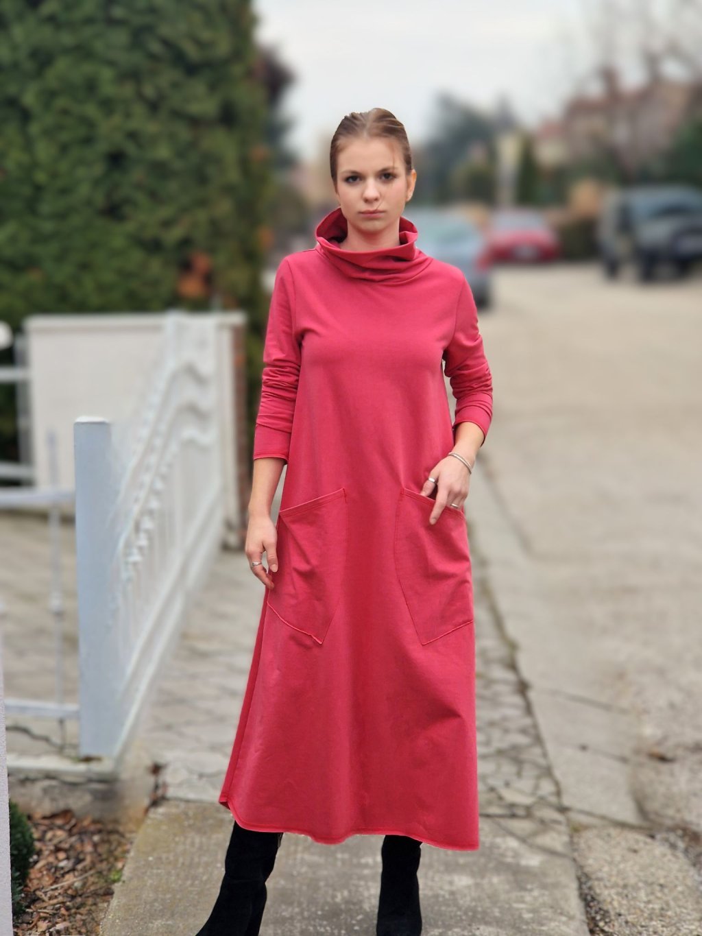 AJA Brick Á-čkové teplákové šaty s rolákom a vreckami